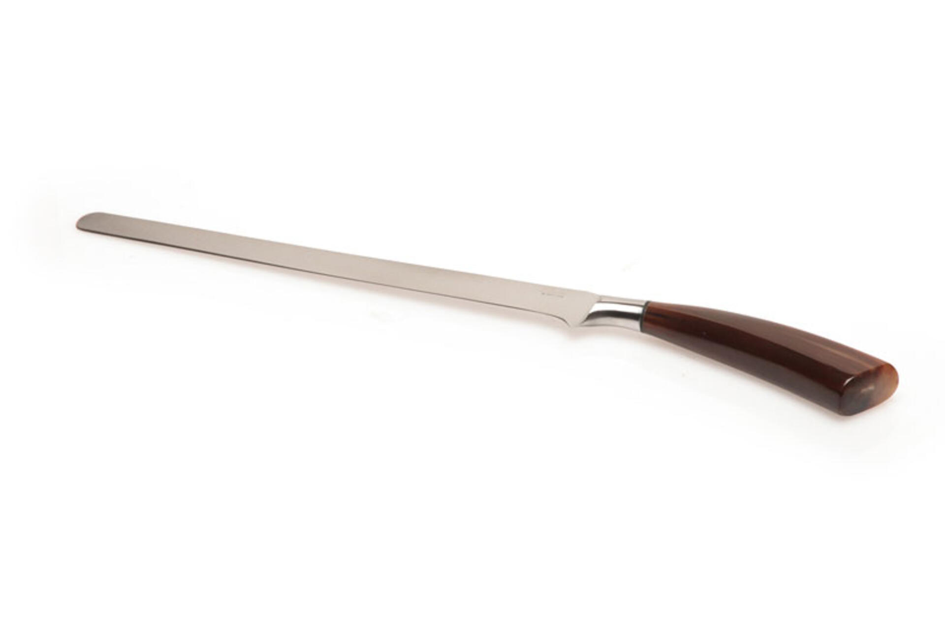 Affettare il prosciutto è un’operazione difficile, ancor più se effettuata con un attrezzo non idoneo. naturalmente il coltello deve avere una lama flessibile per rendere il taglio sensibile al massimo e permettere di mantenere lo spessore voluto.