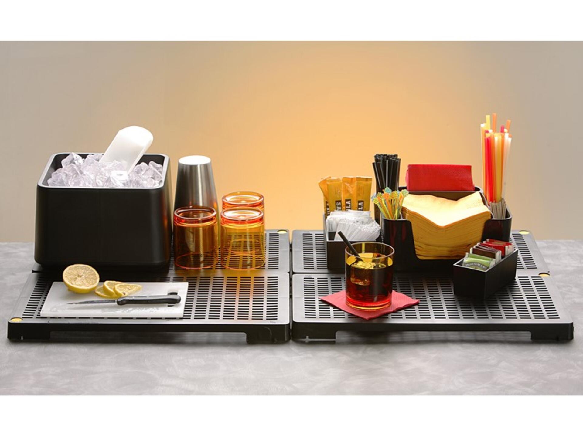 robusta e pratica griglia componibile che permette la veloce asciugatura degli oggetti sopra il bancone del bar, lavabile il suo design pulito ed il suo colore elegante la rendono l' oggetto ideale anche per la vetrina espositiva di banconi e vetrine.prodotto da mc ristorazione, ditta che conosce i diversi polimeri per la storia che ha maturato in 50 anni di esperienza e li adatta alla funzione migliore... la conoscenza al servizio dell' utilizzo.