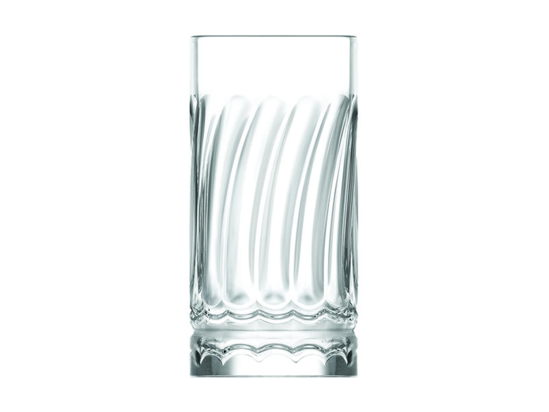 Bicchiere long drink della linea Mallorca in vetro professionale, ideale per la presentazione di cocktail, succhi e bevande miscelate. Il design slanciato è impreziosito da motivi a rilievo che richiamano il movimento delle onde, catturando la luce e valorizzando i colori vivaci delle preparazioni. Perfetto per ambienti ristorativi che ricercano un equilibrio tra estetica contemporanea e funzionalità, assicura una "mise en place" chic e di grande impatto visivo. Prodotto di alta qualità, progettato per resistere all'uso intensivo e ai lavaggi in lavastoviglie professionale.