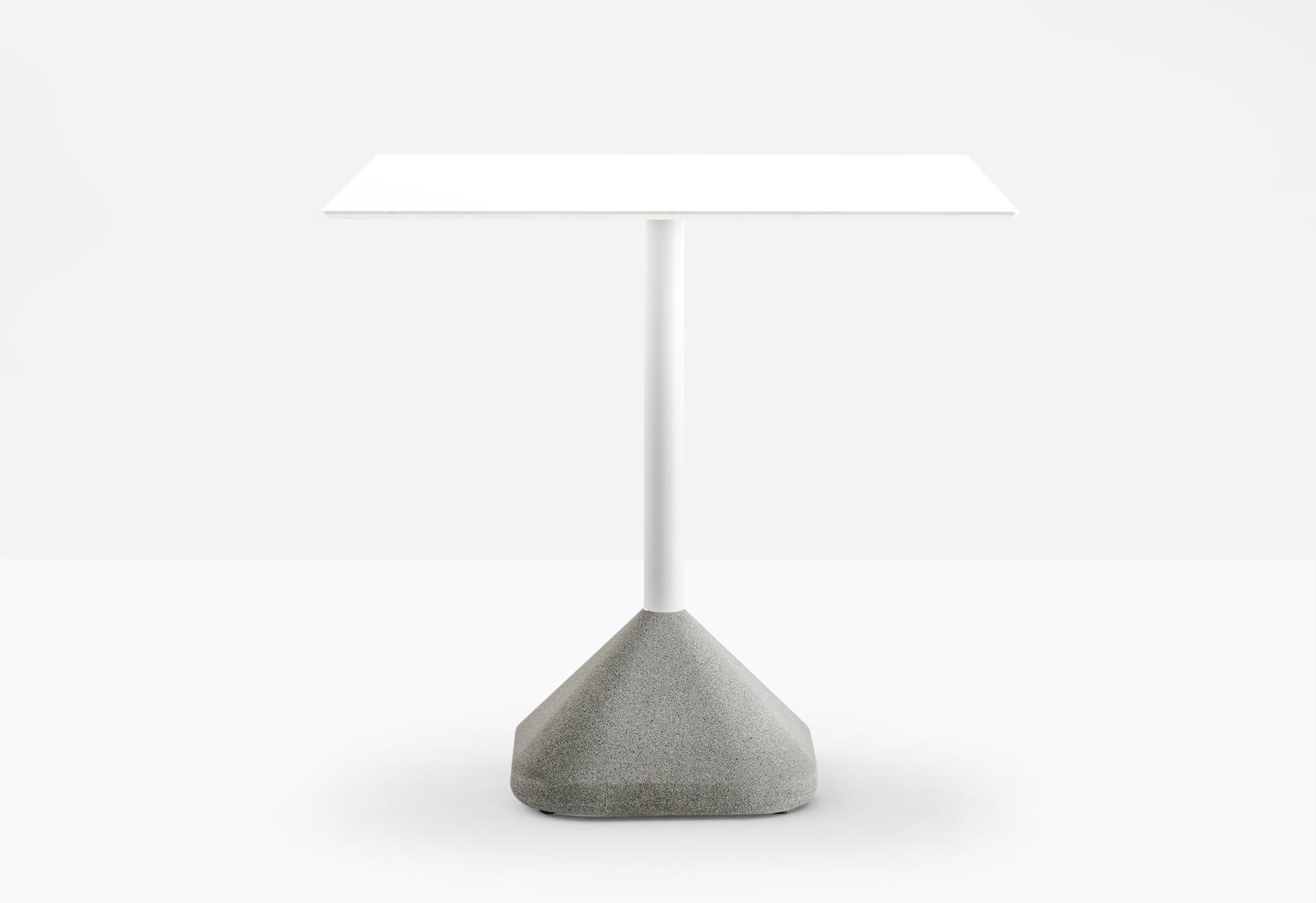 Una base tavolo deve essere durevole e avere un certo peso che le dia stabilità. Da questo semplice ragionamento nasce Concrete, un tavolo con base in cemento da esterno che sfrutta le caratteristiche del materiale in modo naturale e intelligente. La forma è stata scelta per ottimizzare il peso. Il cemento ha una graniglia fine, la colonna è in acciaio. Abbinabile a ripiani in diverse dimensioni e finiture.