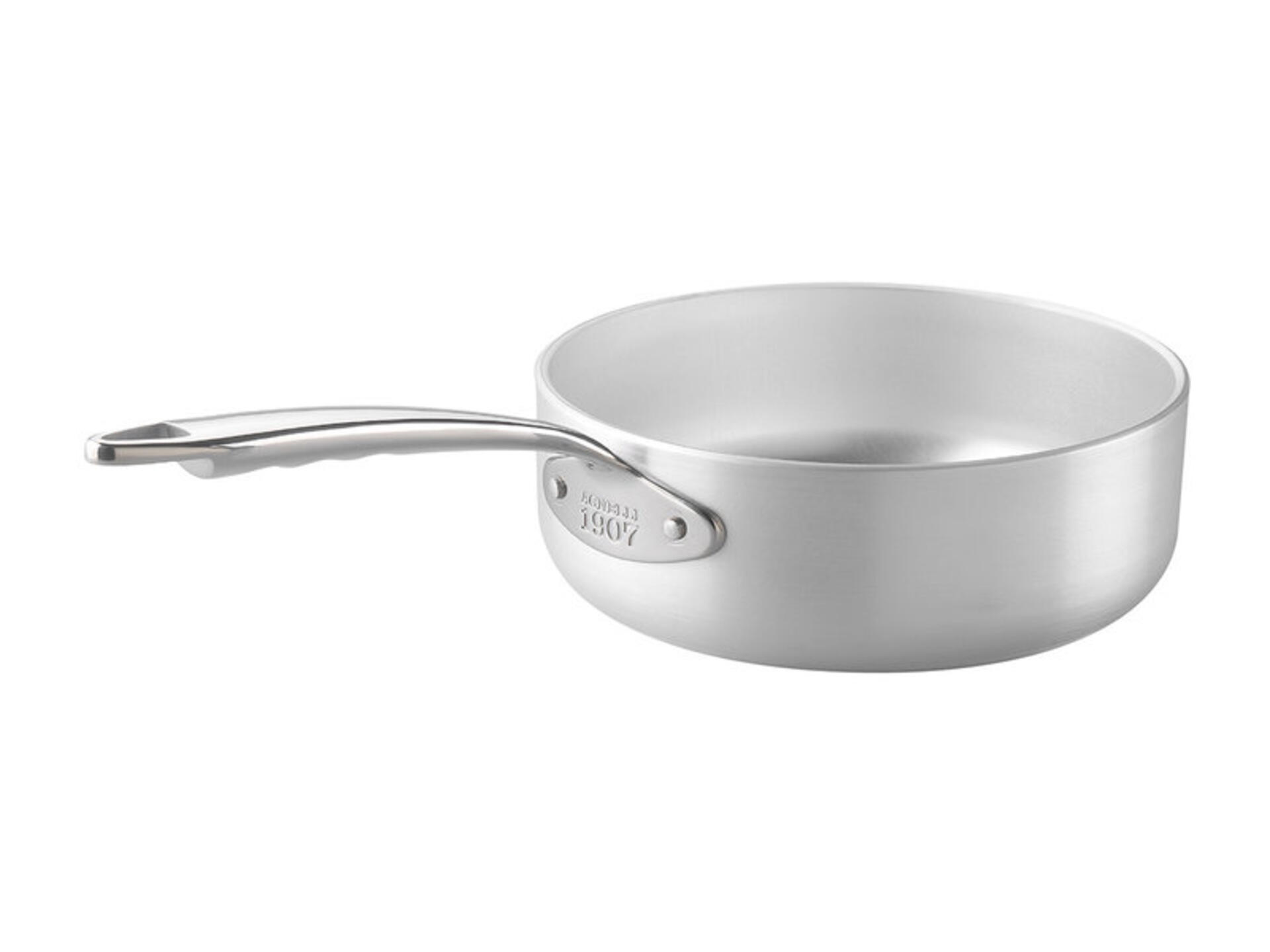 adatta per cotture su gas, piastra elettrica, radiante e induzione. il corpo è in aluinox a 3 strati con anima in alluminio 80% tra uno strato esterno in acciaio ferritico e uno strato interno in acciaio inox 18/10. progettata con uno spessore di 3 mm per una distribuzione uniforme del calore, con manigliatura in acciaio inox serie 1907 atermica rinforzata con rivetti e bordo rinforzato antigoccia. la finitura è lucida a specchio.